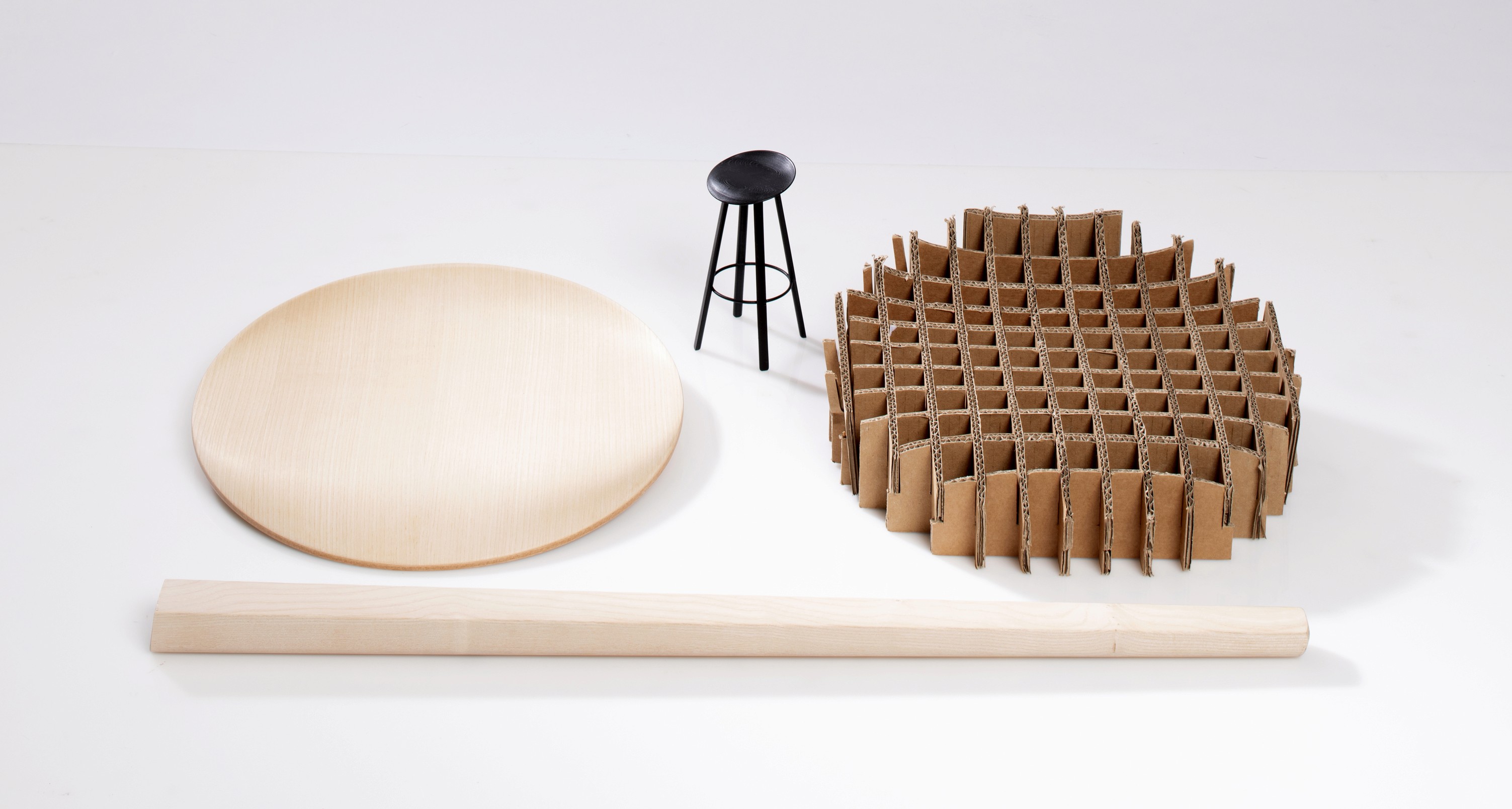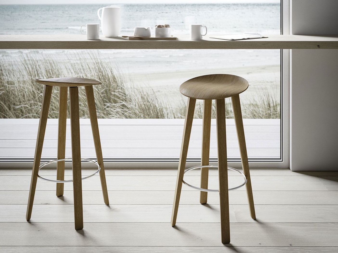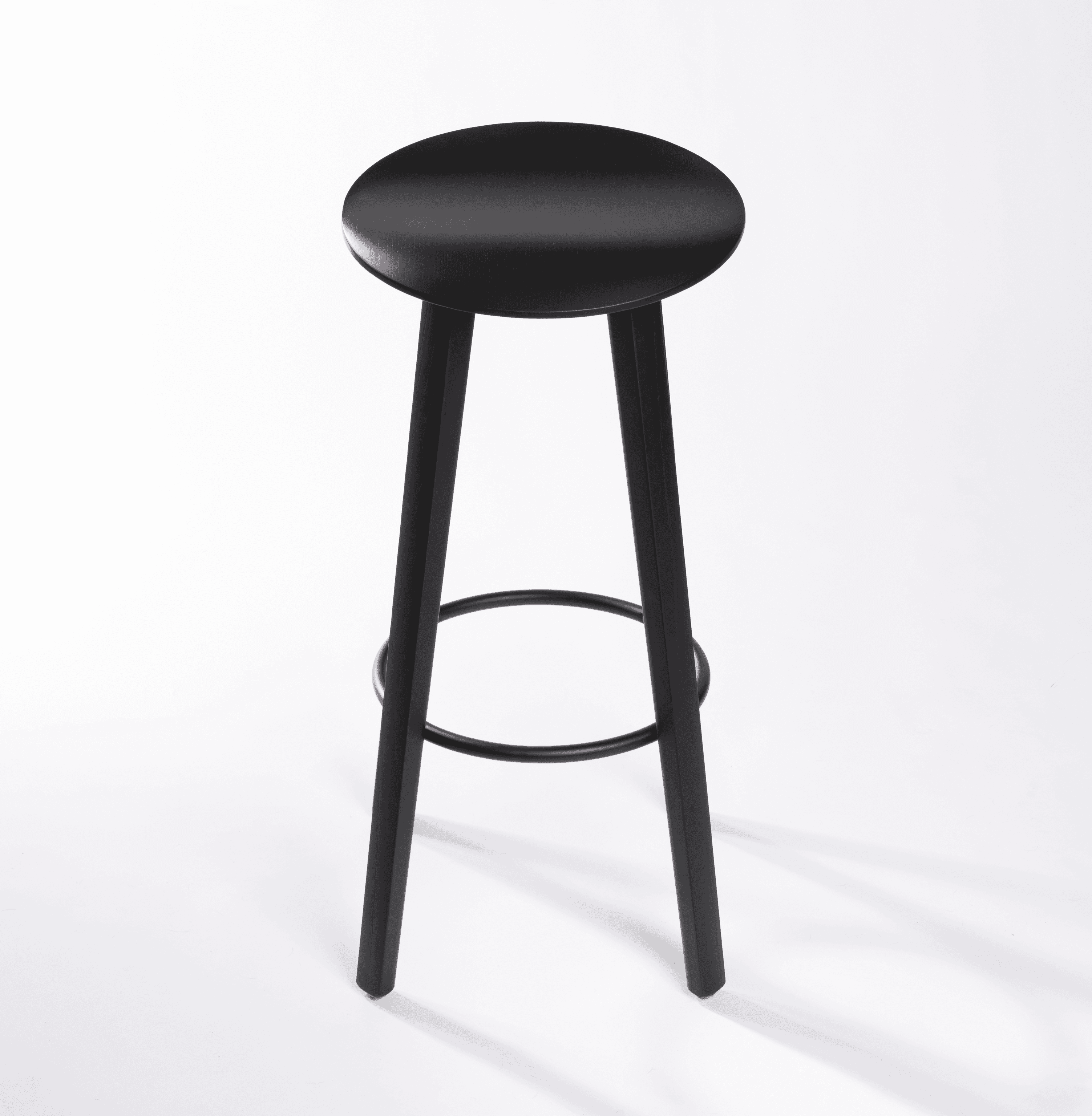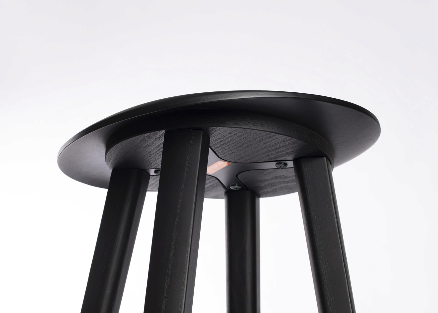 Beret is a wooden stool that combines pure geometry with comfort.The idea was to design a stool that has a surprising level of comfort within a slim minimal form. This combination is achieved through the unique form of the rounded plywood seat pan. The form is pushed out at the front and in at the back while retaining a pure circular perimeter.