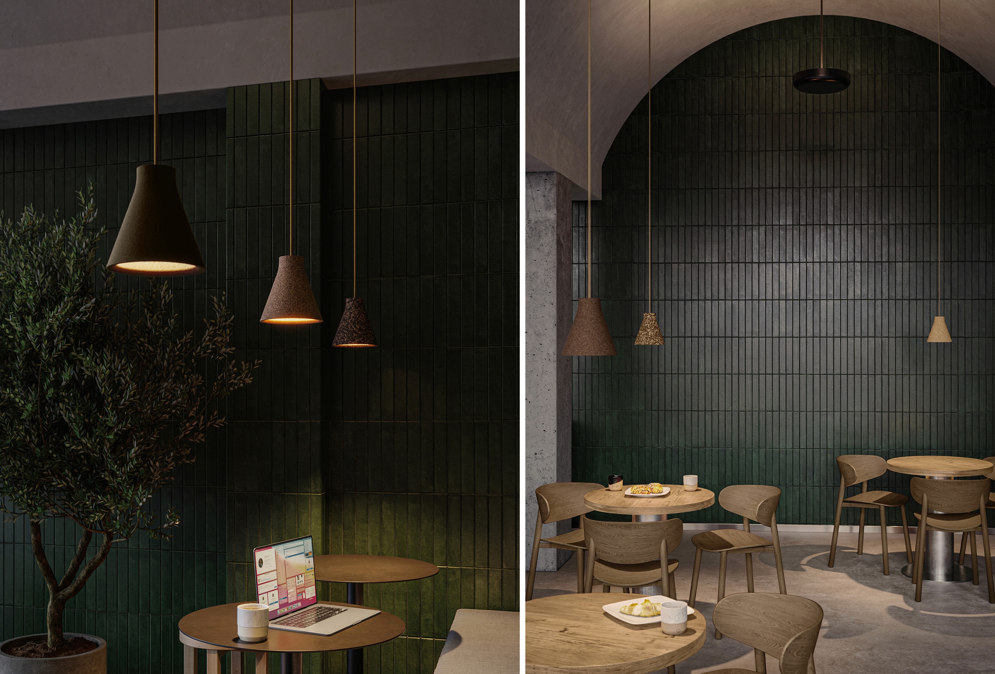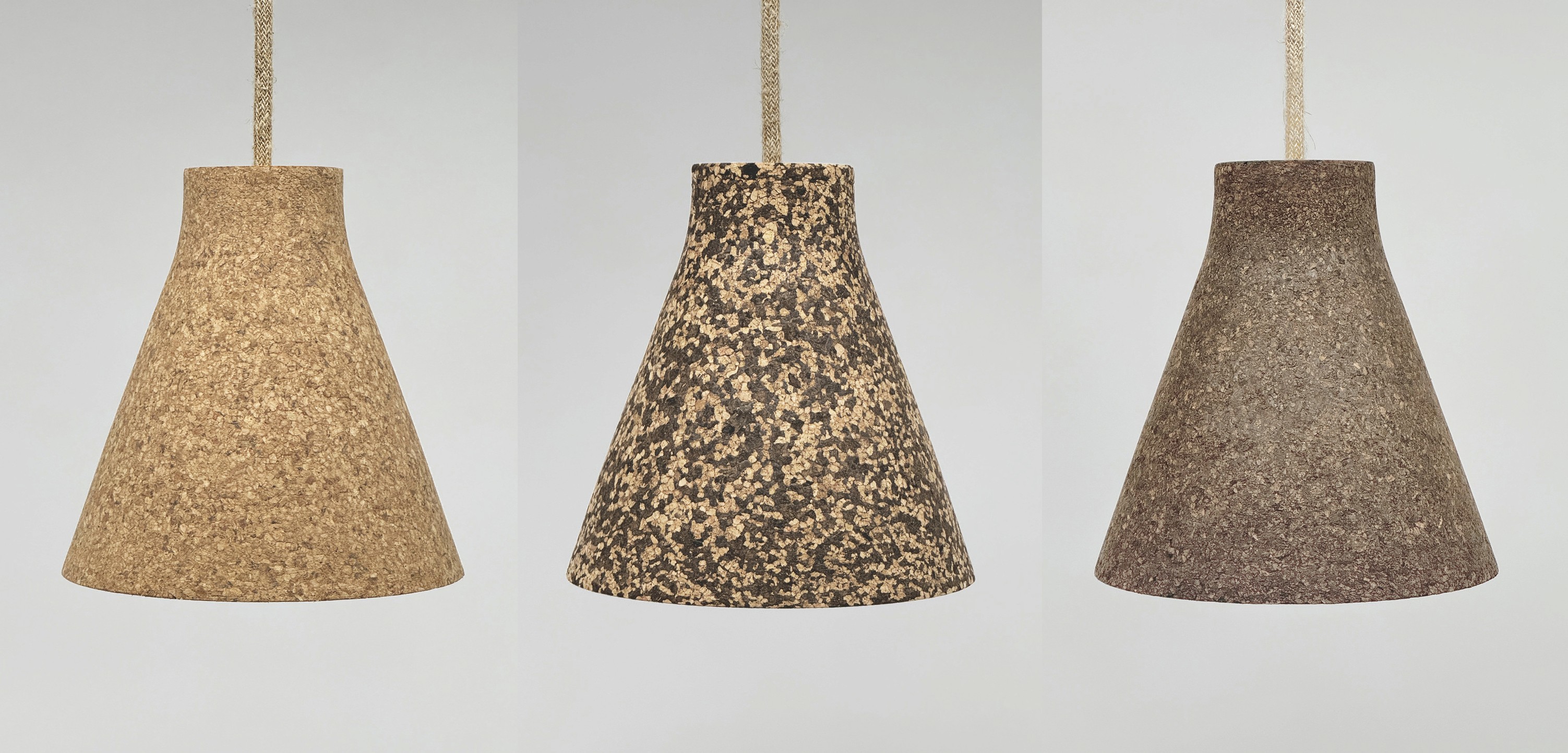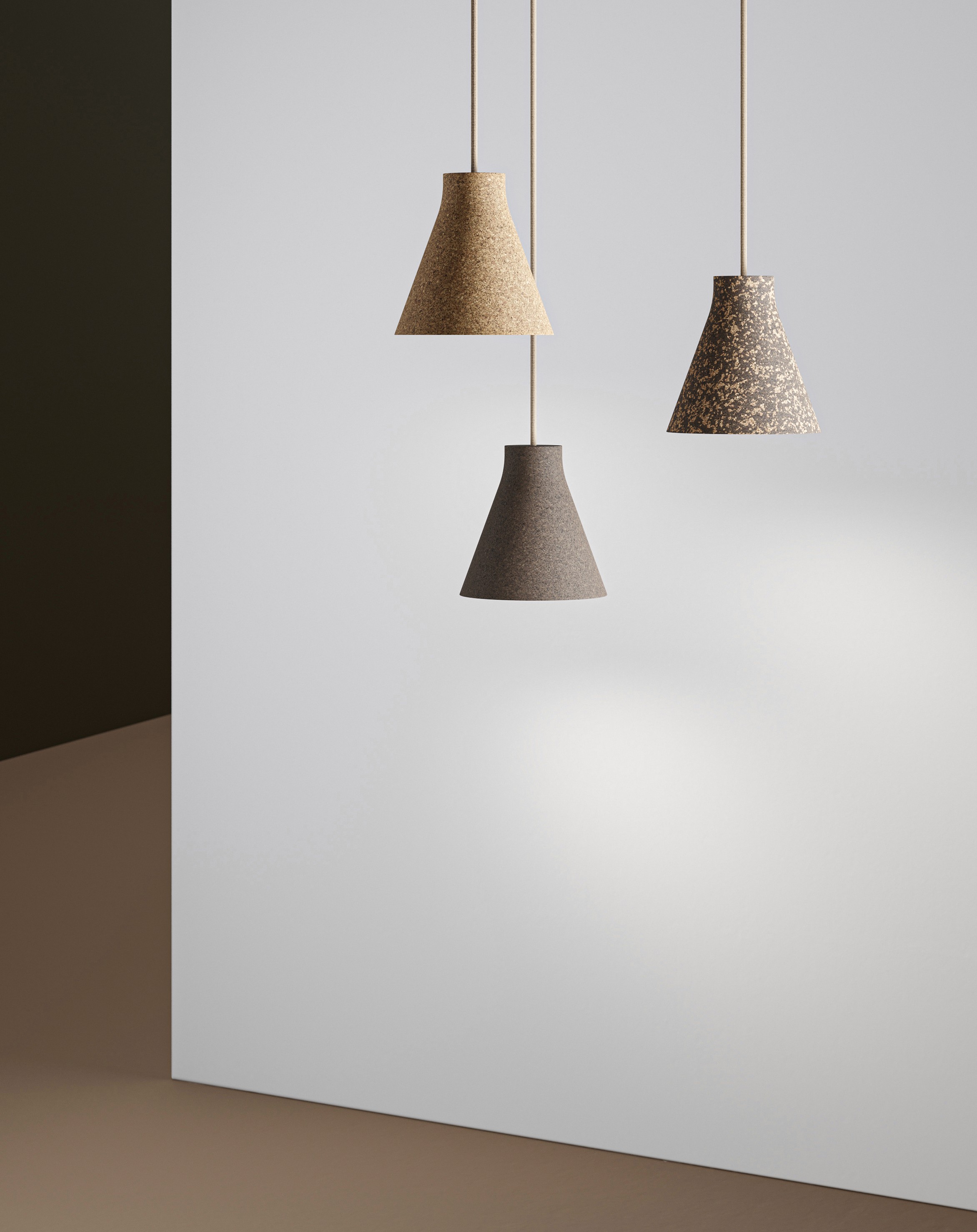 With these goals in mind, we developed Corka, a compact pendant crafted by pressing granulated cork into a two-part mold. Corka’s conical form features a soft internal edge which provides a graduated light effect from the neatly fitted GU10 light source. “