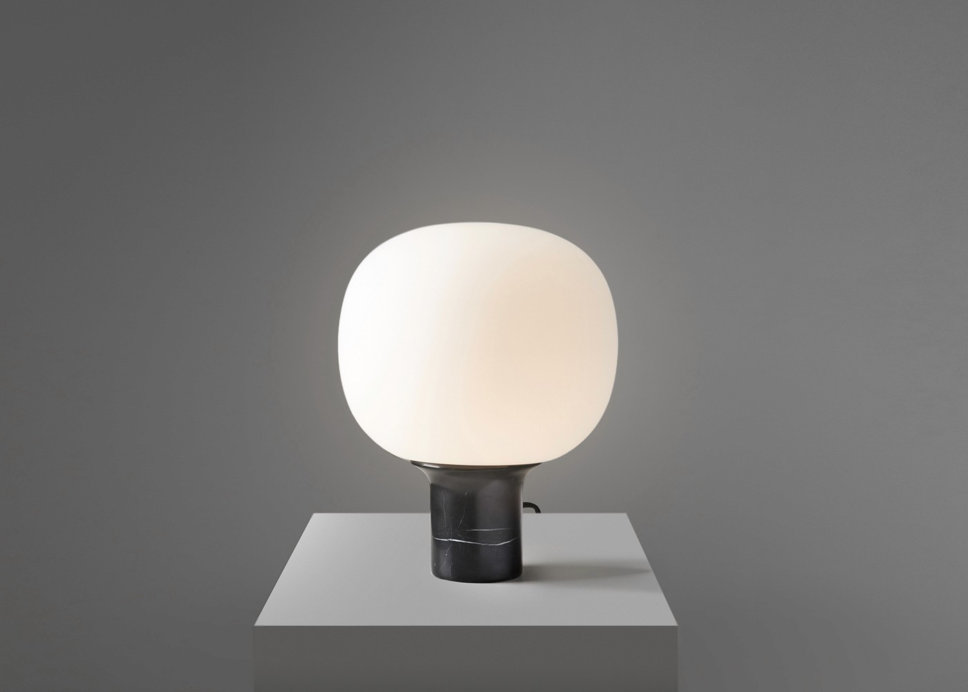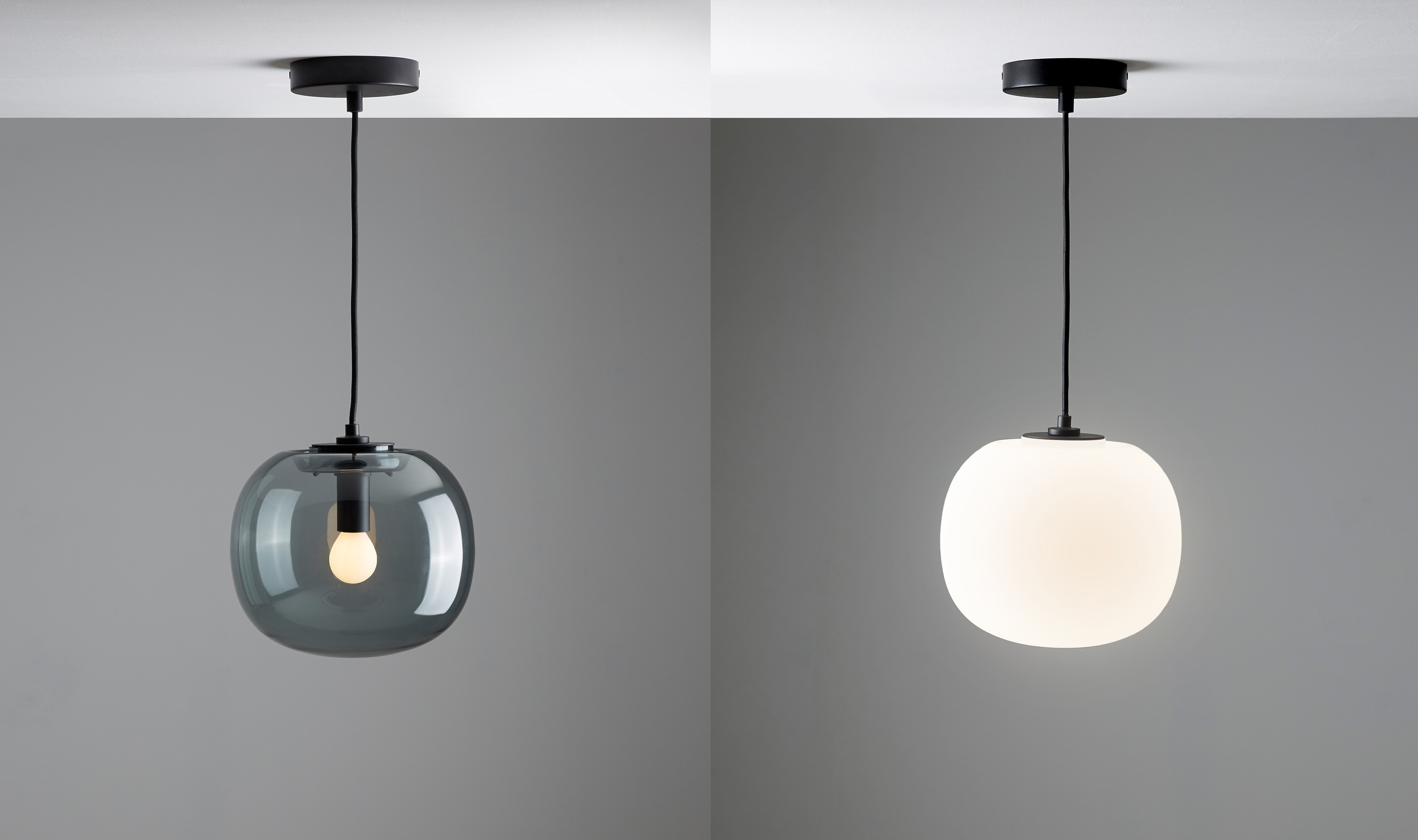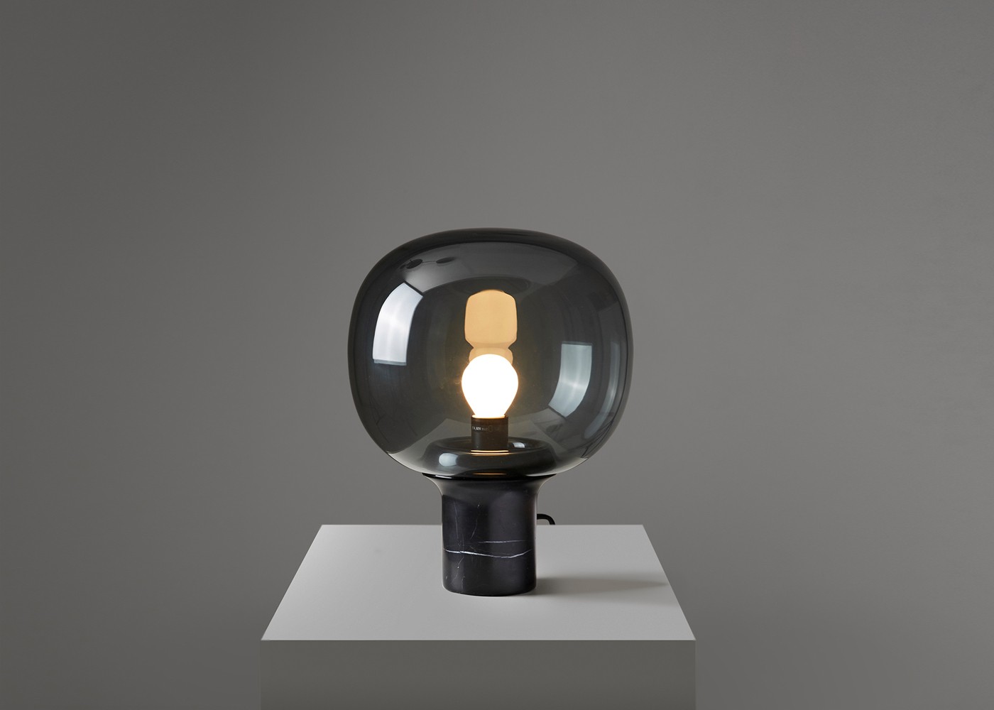 The signature detail is the junction between shade and base. The glass is blown with a unique profile to match the angle of the base so to simplify the connection, removing any need for extra screws or glue. This detail creates the vision of the glass flowing up and around the collar then disappearing down into the base.