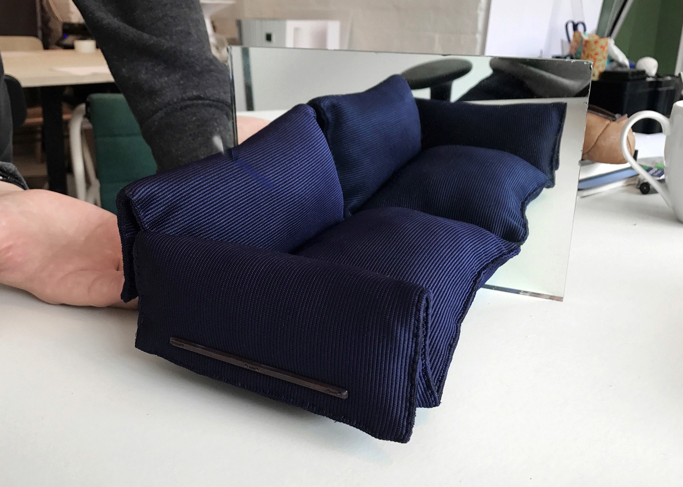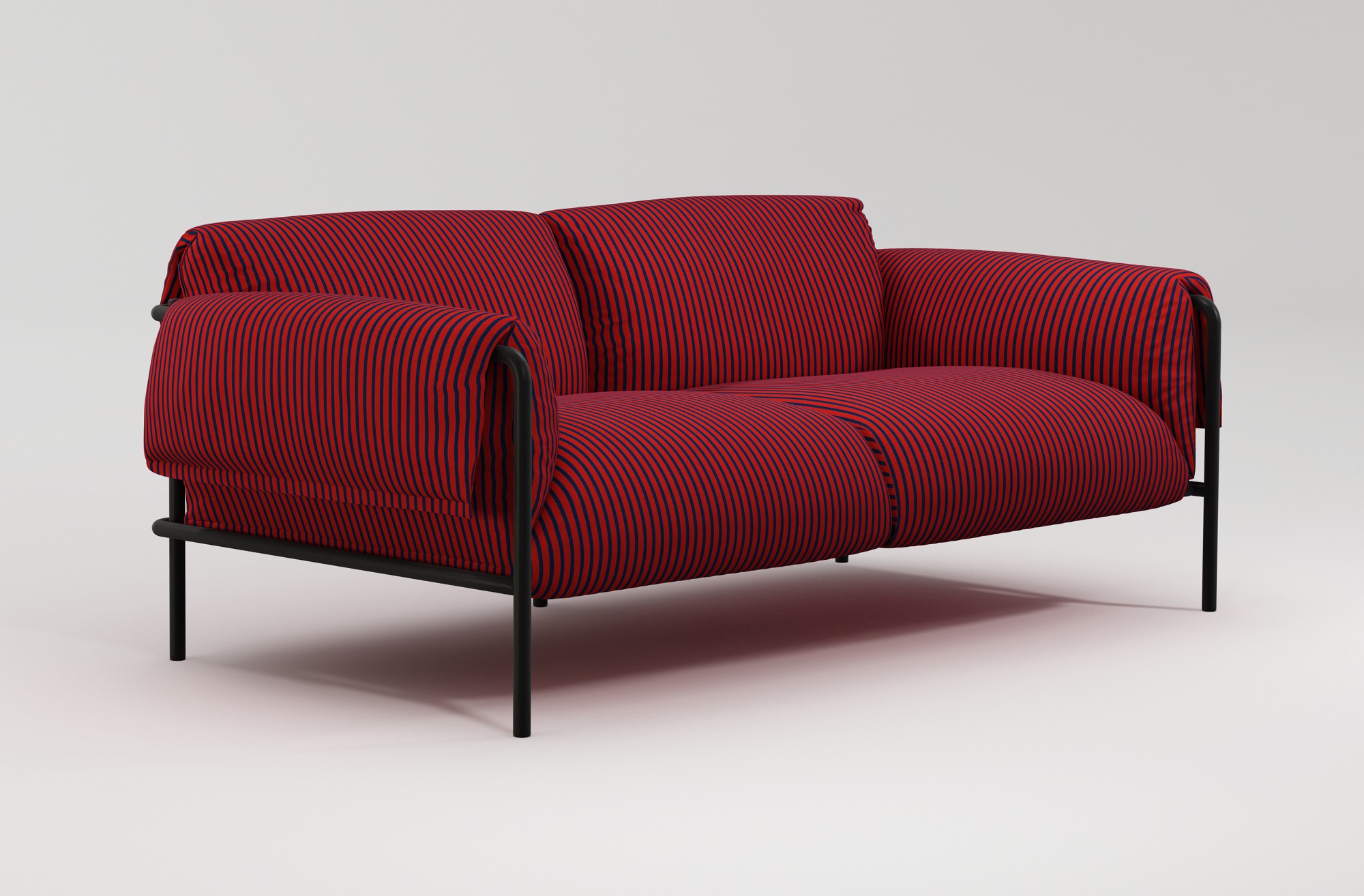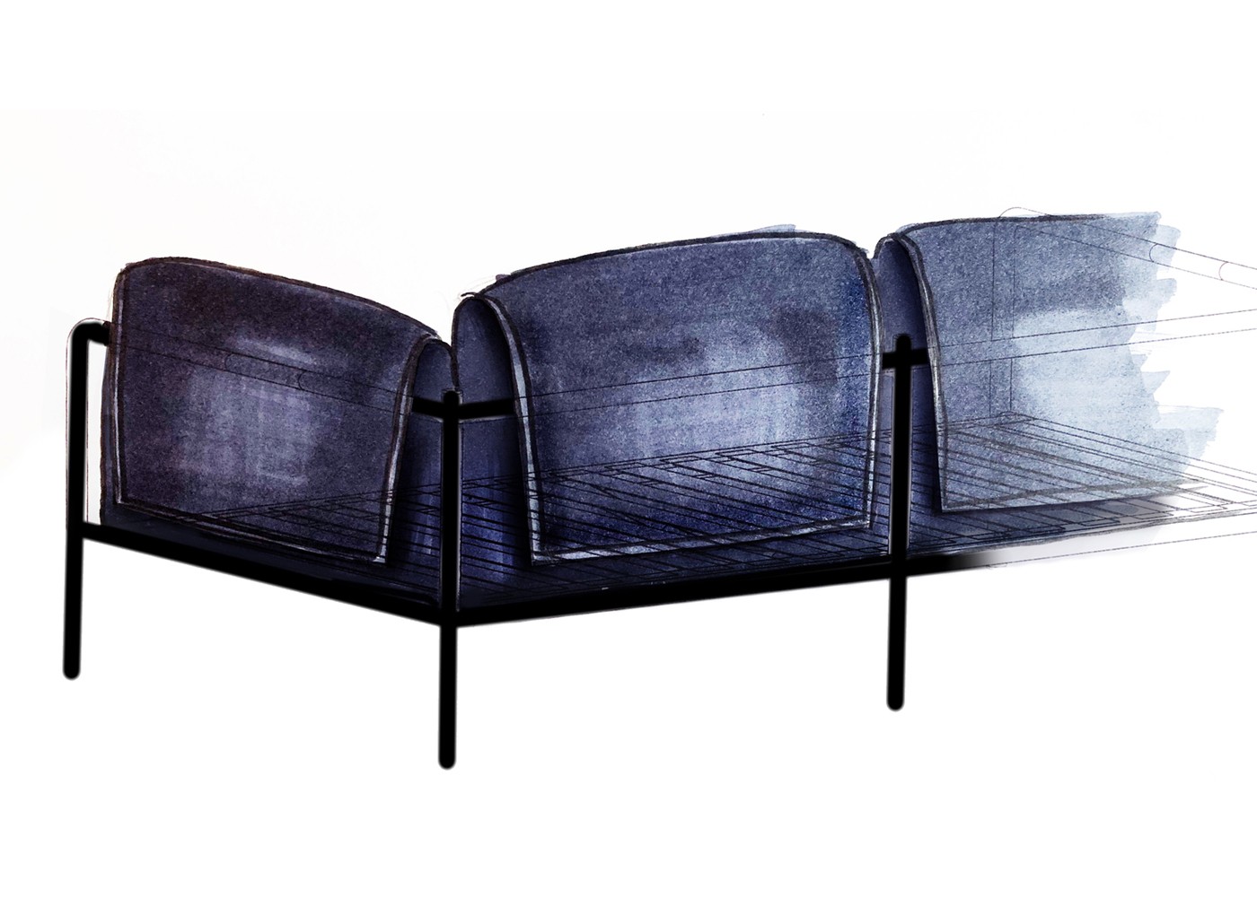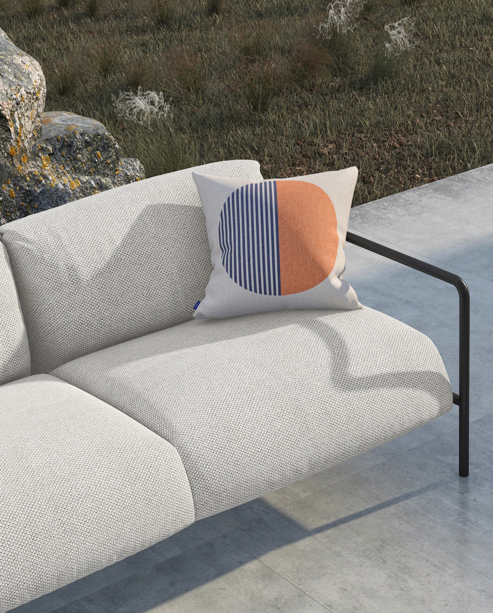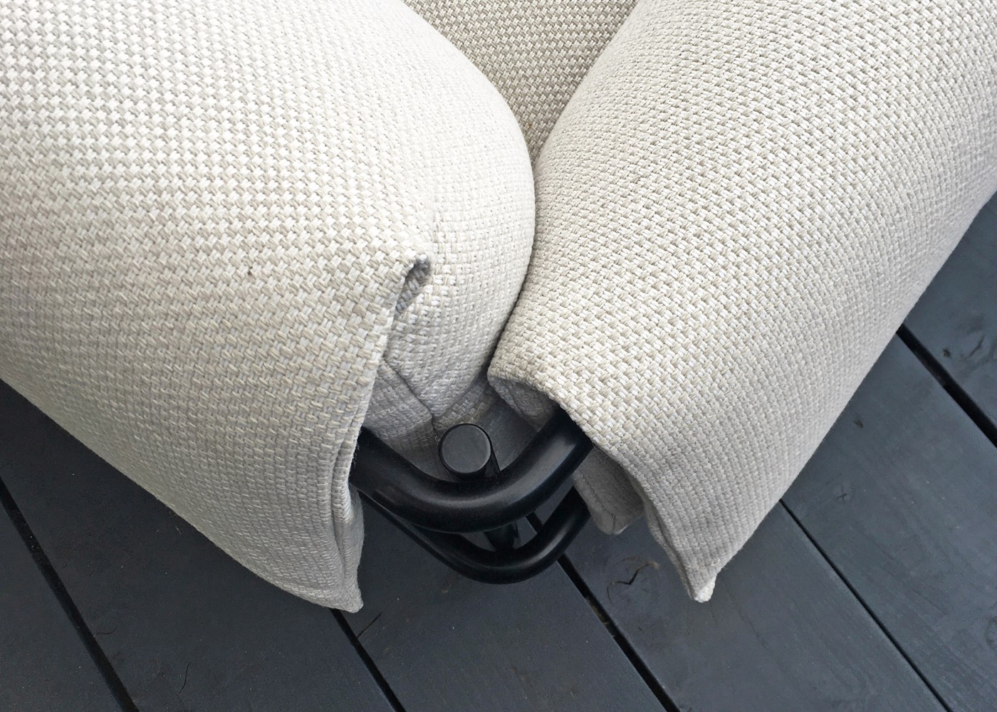The sofa provides extra comfort with its thick pillowed cushions, supported by a sprung metal frame. Its fully removable upholstery, with padded flaps that fold around the tubular metal frame, allows all components to be fully separated at the end of life. The sofa also uses hydro draining foam and water-resistant fabrics, and its frame is made from stainless-steel to prevent rust. The modular construction allows for easy cleaning, mending, or part replacement, while all materials can easily be separated for recycling.
