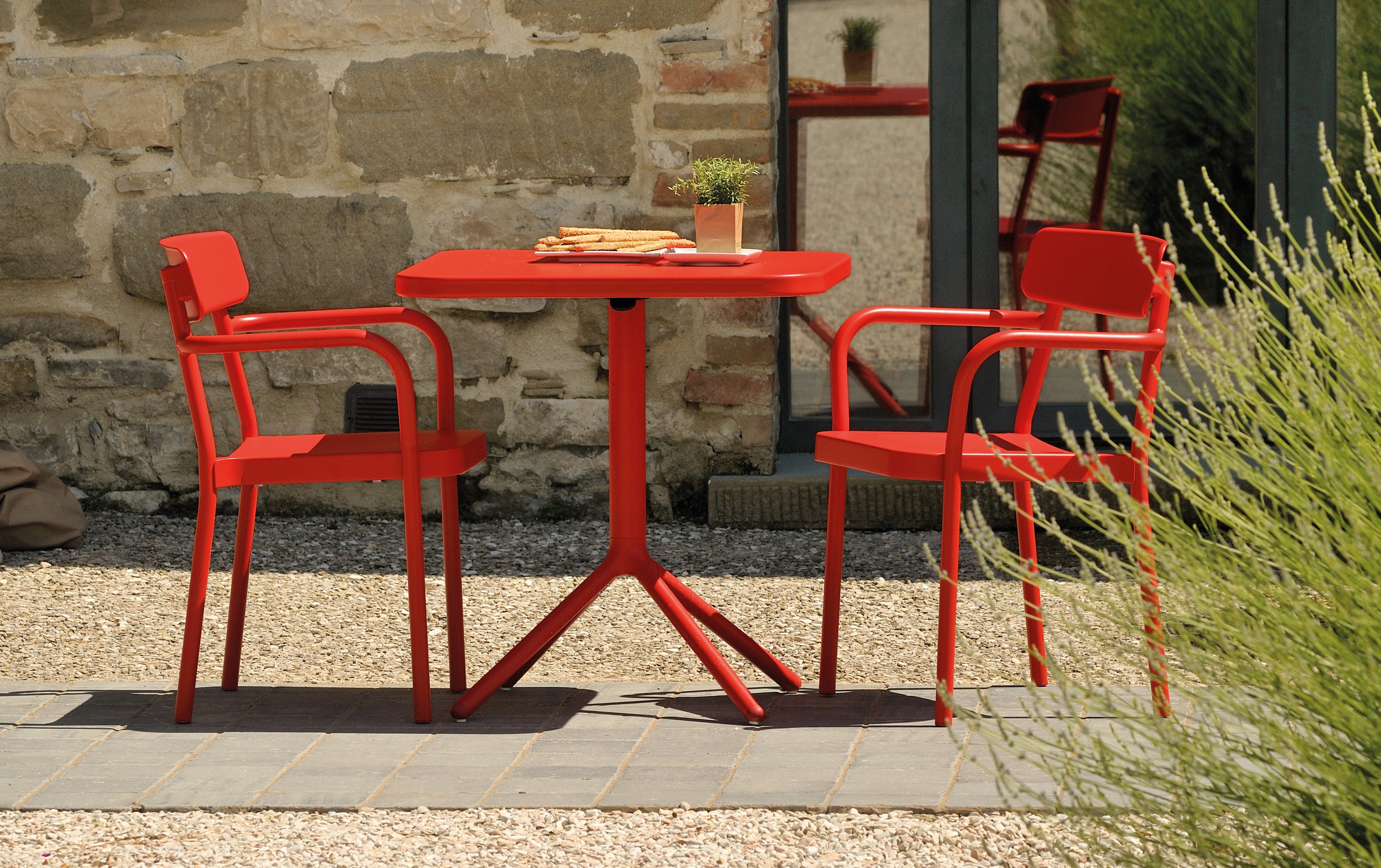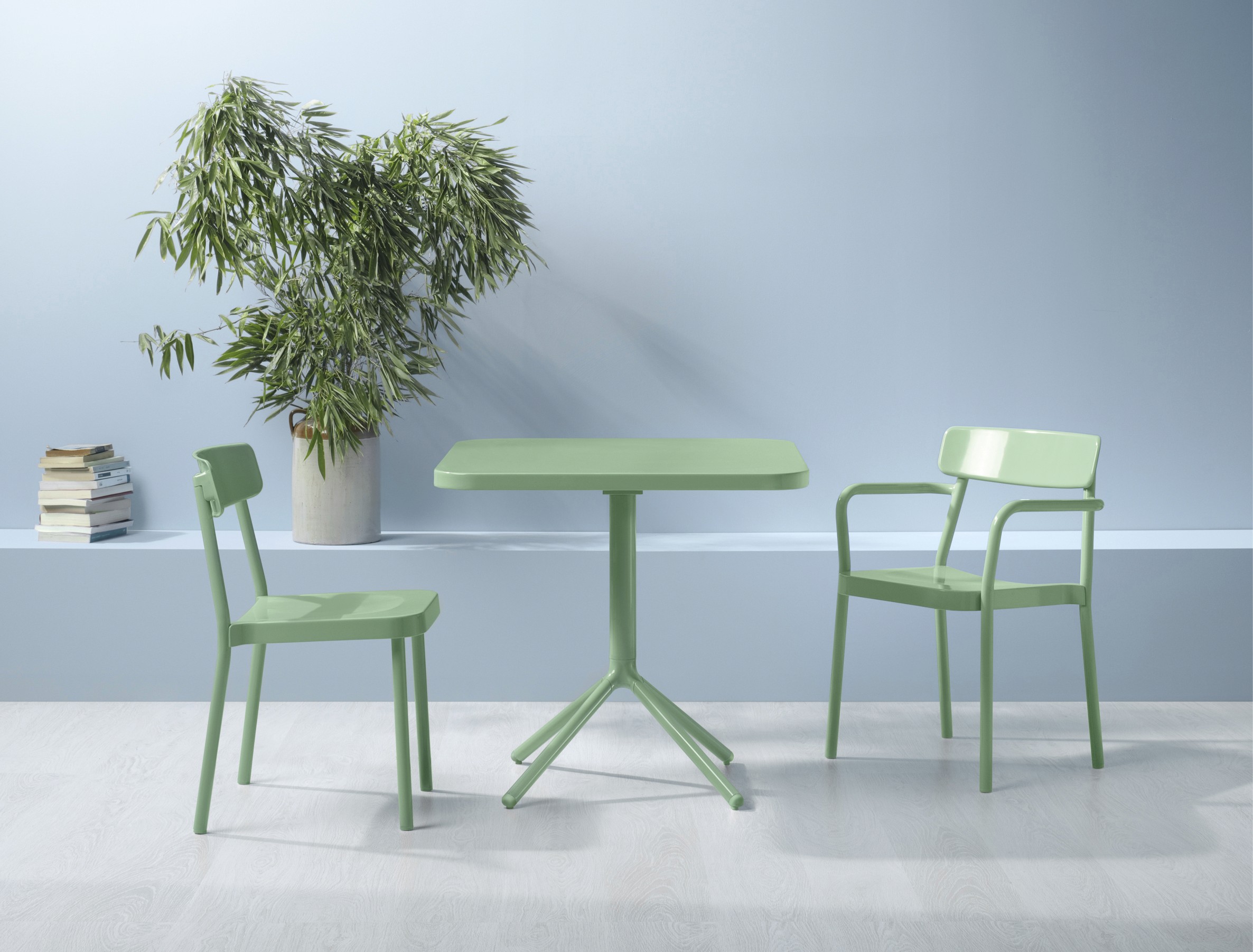 Grace is a die-cast aluminium range of furniture for Italian brand EMU. The family consists of a stacking chair, armchair, a stool, and a folding café table. Grace draws inspiration from early 20th century wood furniture and is created to work in all environments, indoor and outdoor. The Lightweight furniture has a deceptively heavy appearance due to the deep hollowed seat pad, which is in reality only 3mm thick. The folding café table has a simple self-locking mechanism and the legs have been designed to stack neatly in series.