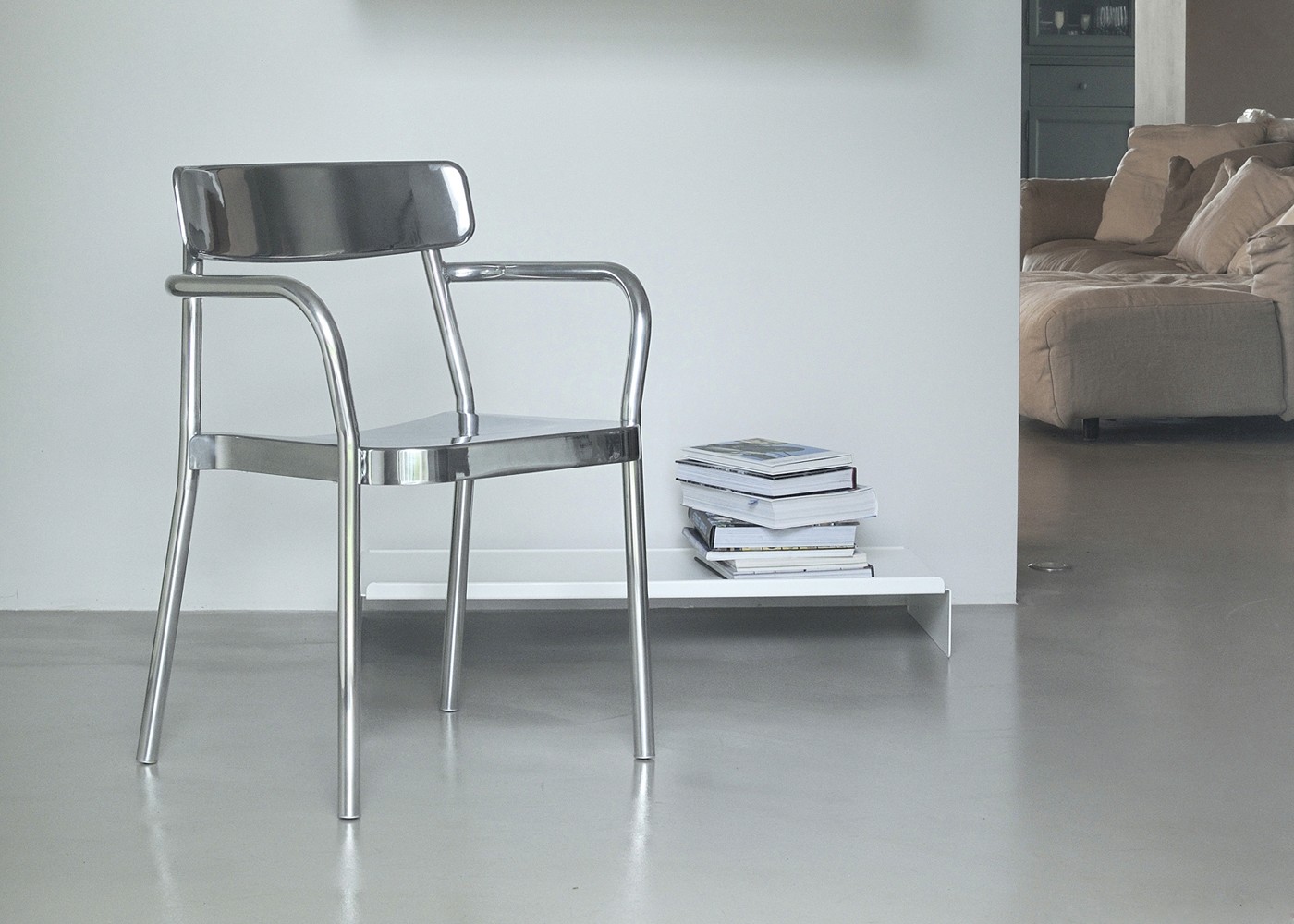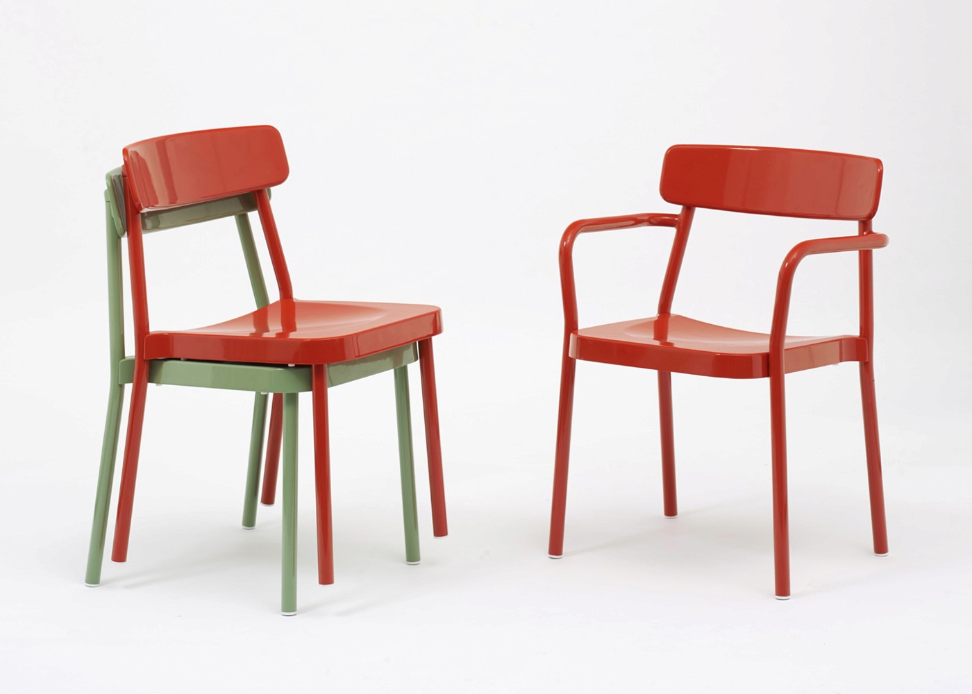 ‘We were commissioned by EMU to design a contemporary chair/armchair that could cross the boundaries of indoor and outdoor furniture. Utilising their extensive knowledge of metal furniture we wanted to design a democratic collection that would have a strong character and style but still come in at an affordable price. By making the castings and connections work hard we have reduced the amount of welding to a minimum. This allows flexibility for the manufacturer and helps to reduce costas smaller components can be individually finished then assembled before shipping.