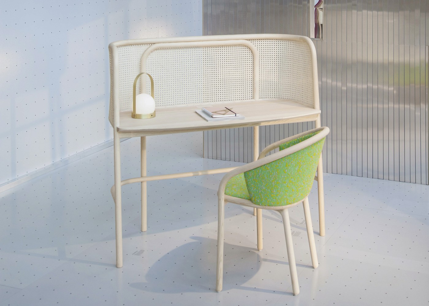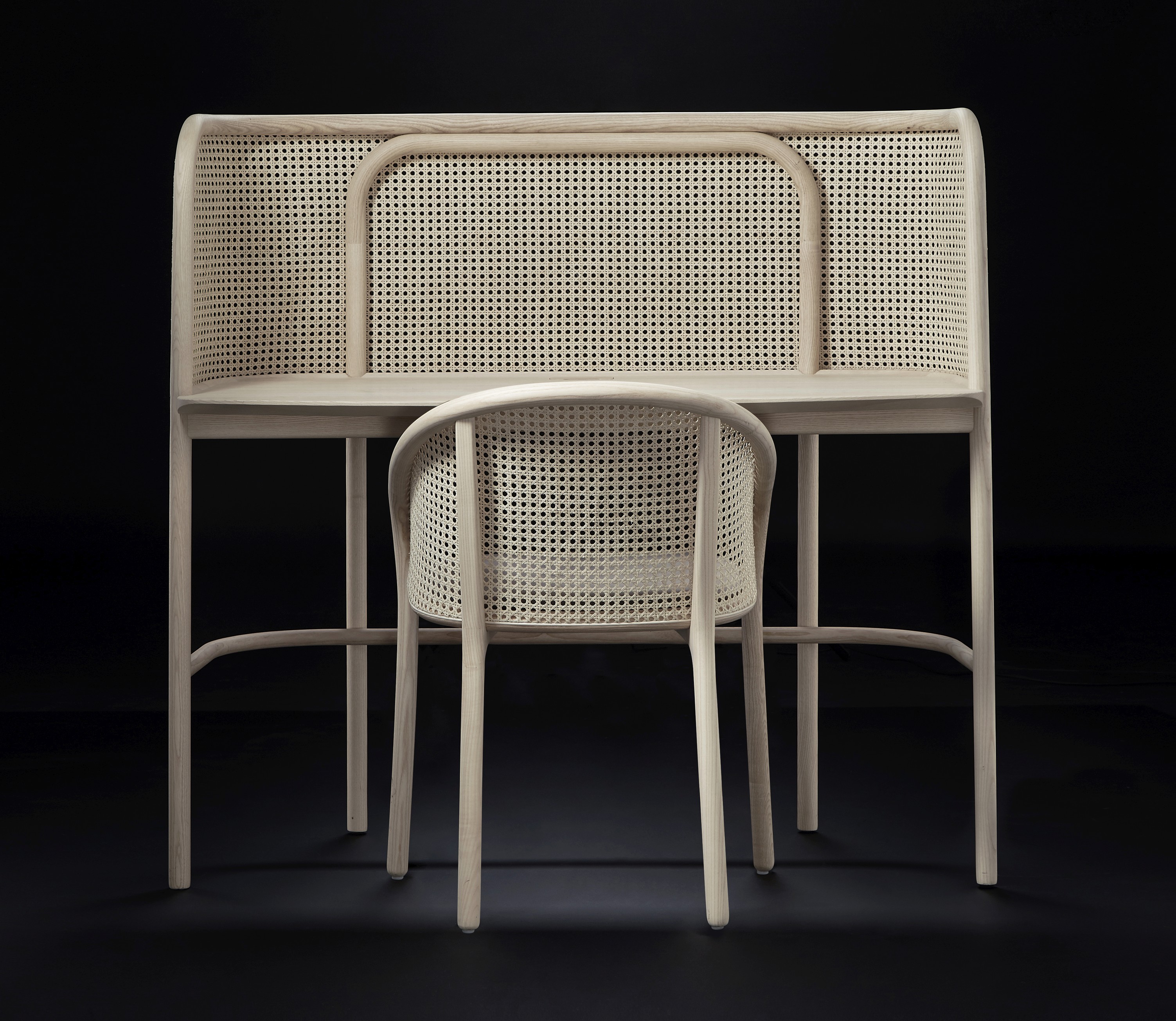 “I wanted to design a desk that had a cocooning effect, I am easily distracted so this desk was very much designed towards my needs. The Vienna straw screen creates beautiful shadowing as the sunpasses through while being closed enough for privacy”The versatile design, expertly crafted in northern Italy, also doubles as a dressing table and pairs perfectly with its matching