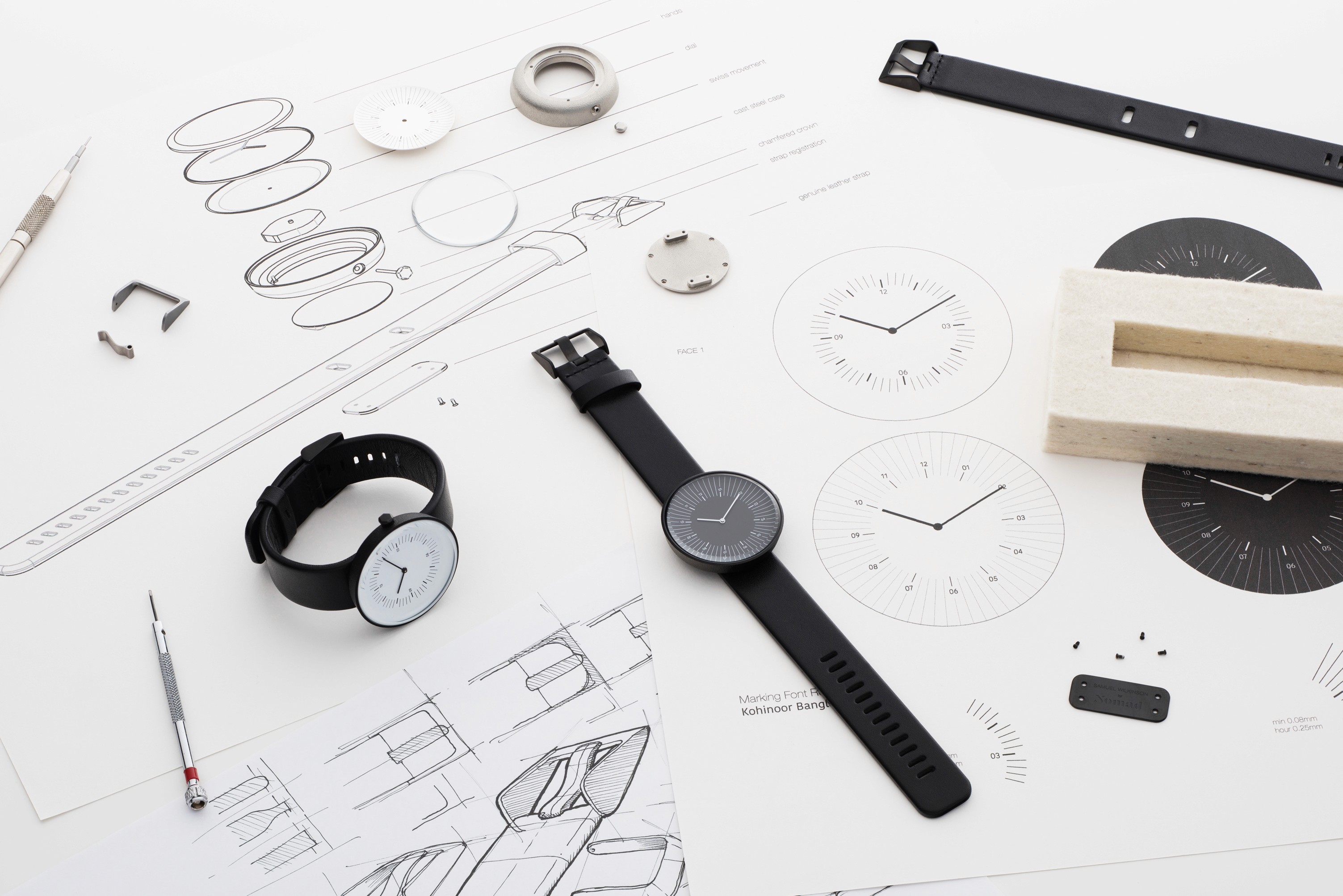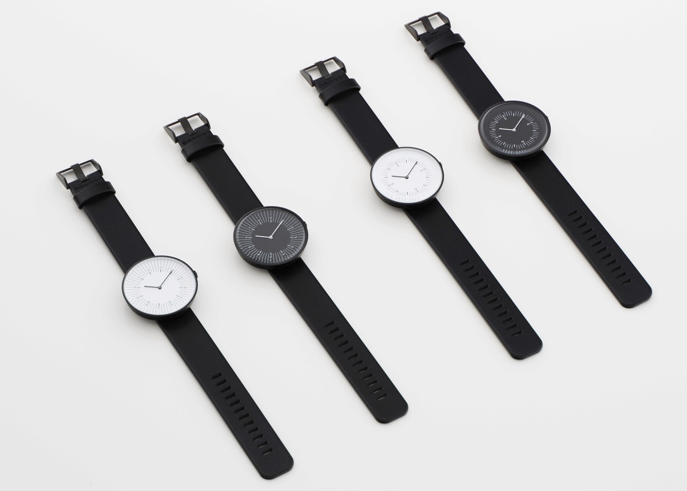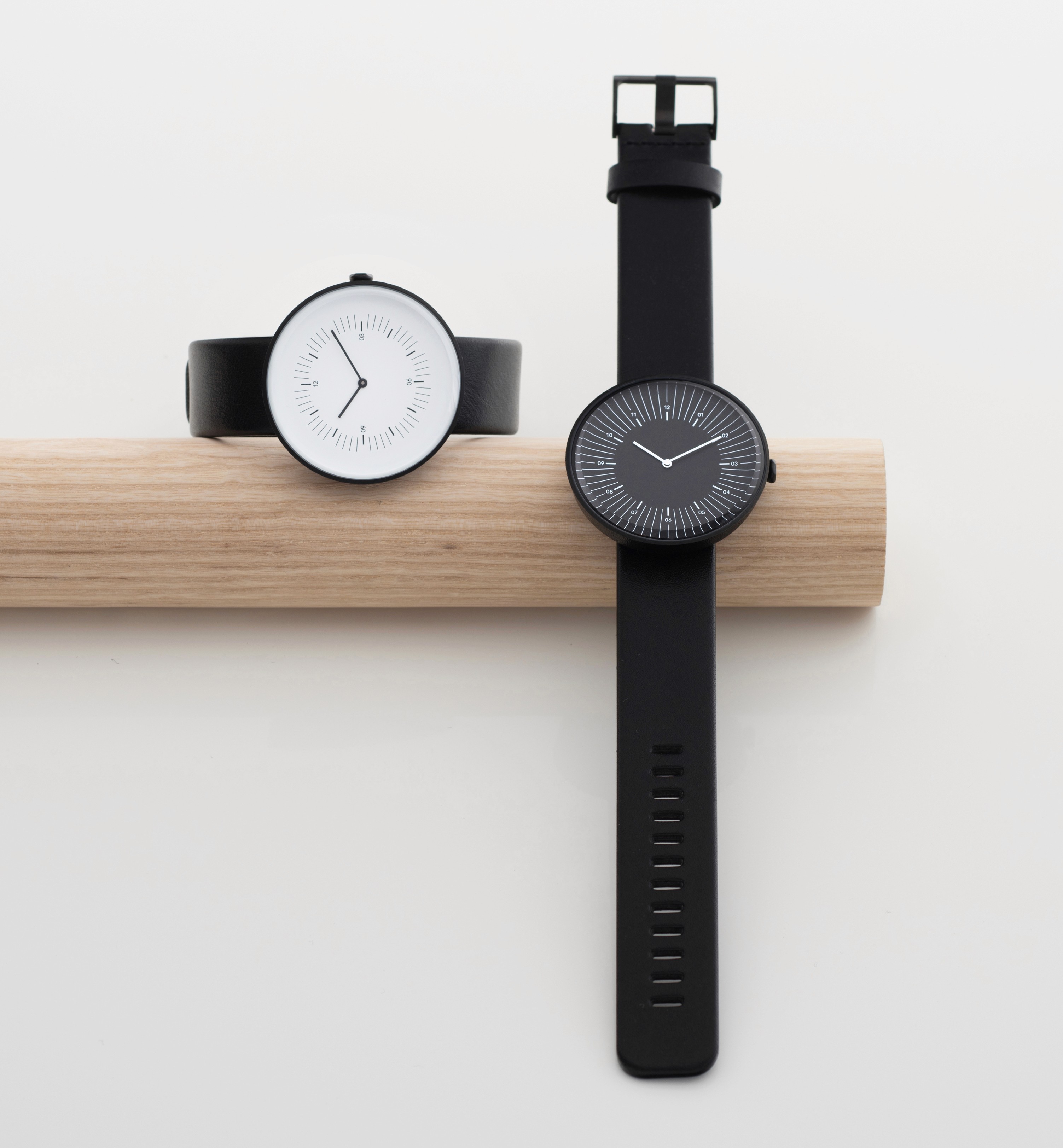 The Line timepieces are designed as precise tools for measuring time. Each face features typical numerical, minute and hour markings but re-arranged in new playful compositions to add a fresh contemporary look.