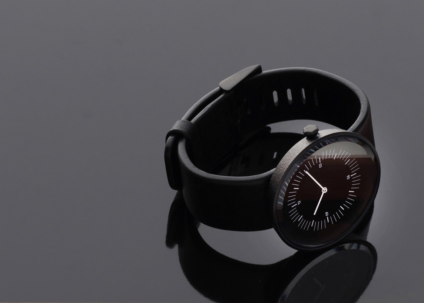 Inline moves the all the markings towards the centre of the dial leaving a clean outer band. Numbers 12, 3, 6, 9 combine with the interplay of positioning and line weight of the hour and minute increments.