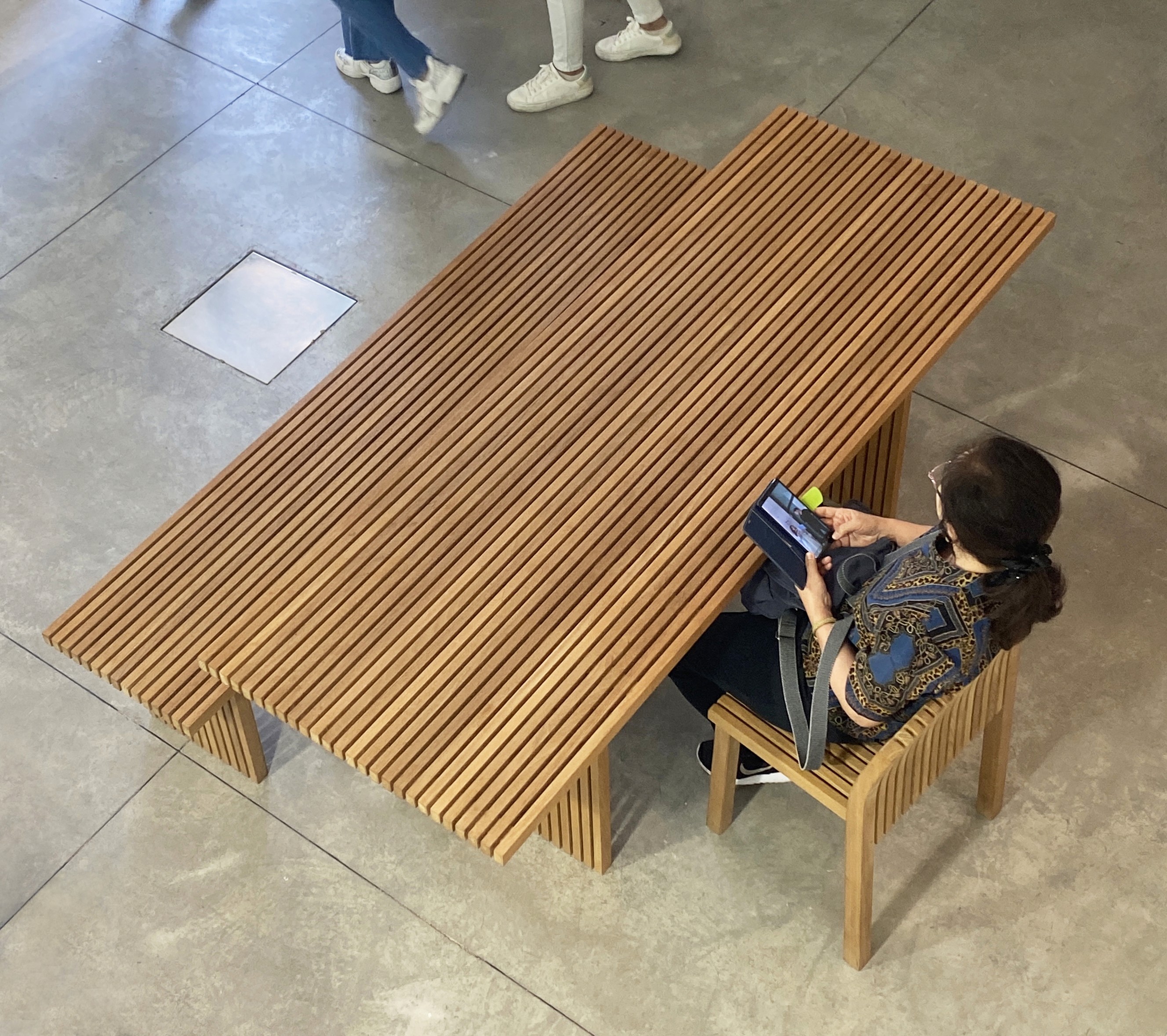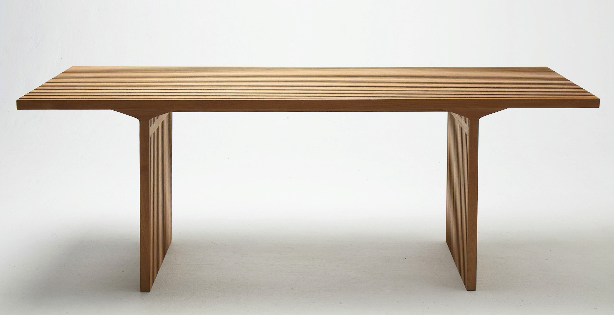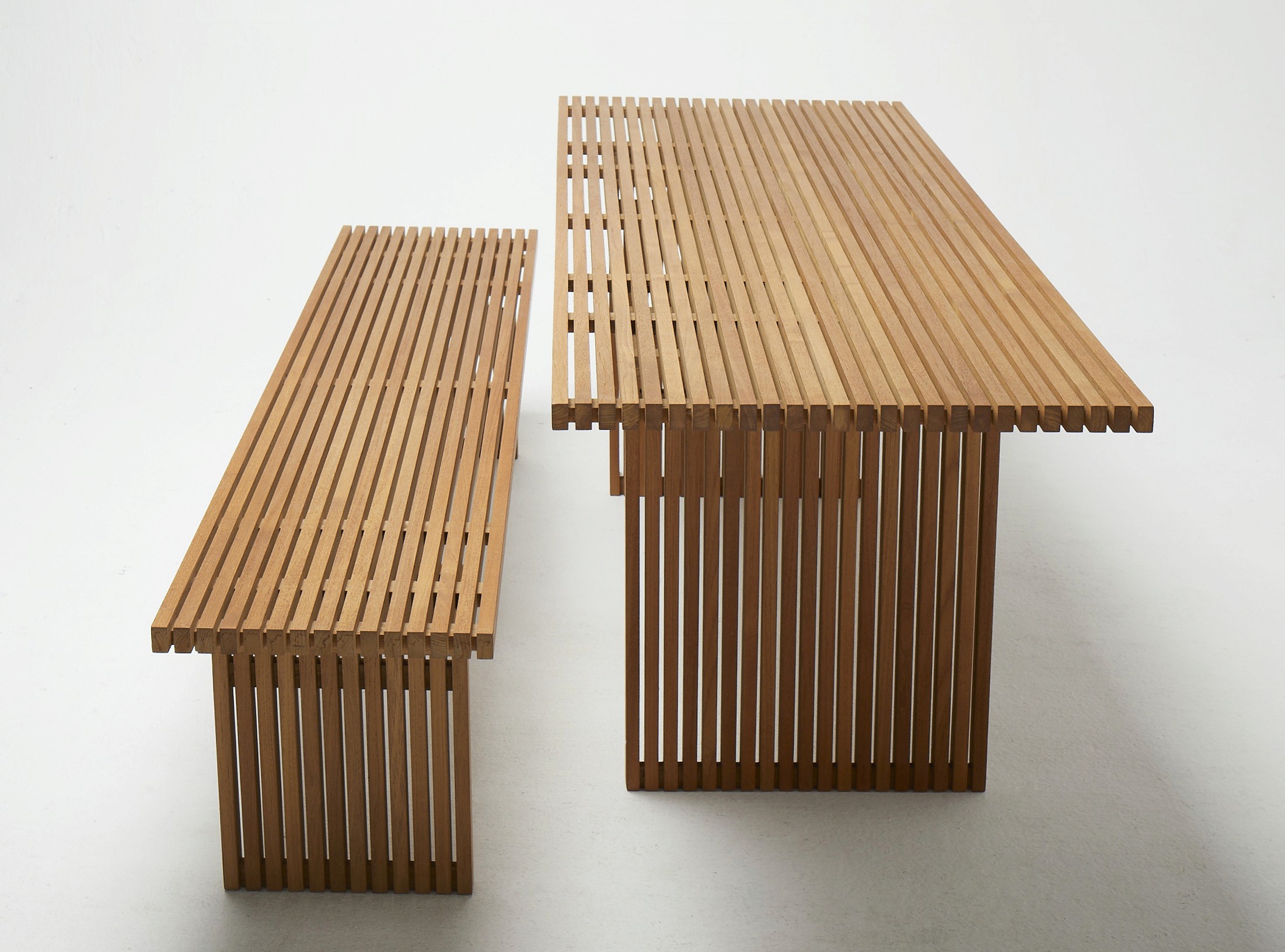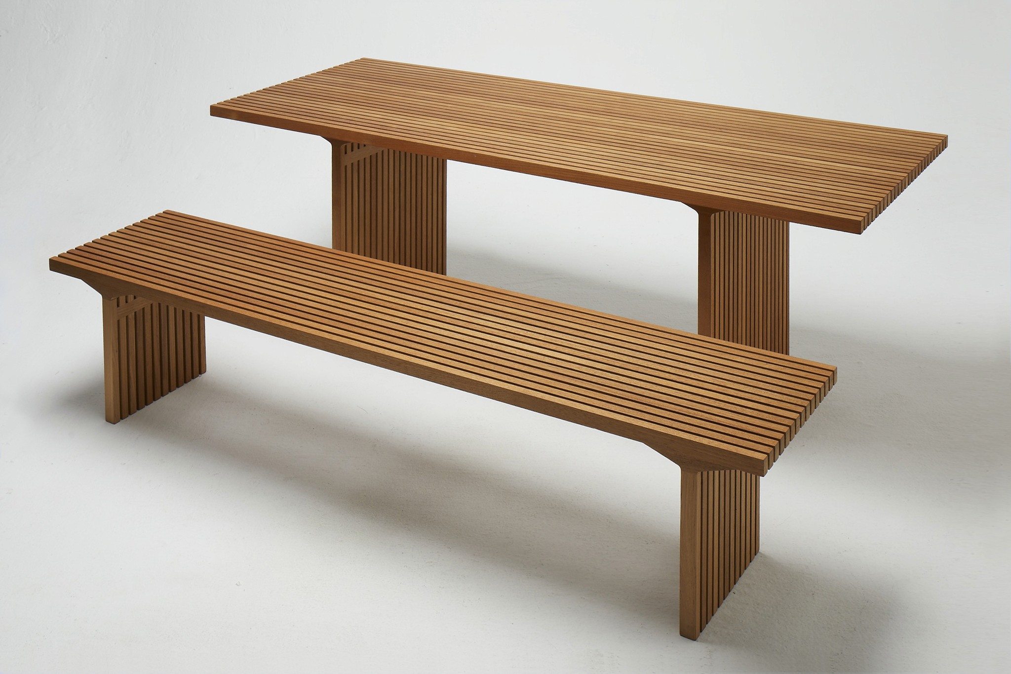 Parallel is a sculptural series of furniture made from waste material of thin strips of solid Teak that were discarded in the factory. The series consists of a table, bench and chair. The collection will be shown for the first time as part of an exhibition called ‘Slow hand design’ at Superstudio during the Salone del mobile 2022 in Milan.