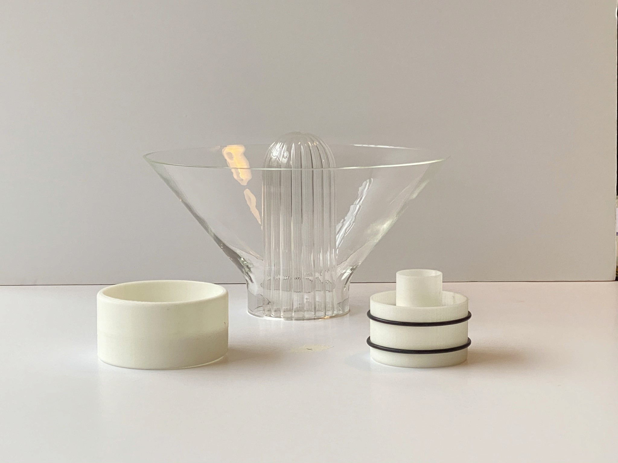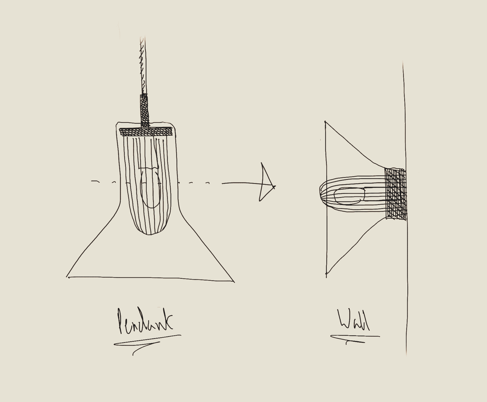 The lamp comes from a sustainable mindset, as all products should, with efficient manufacturing, reduced components and all separable materials at the end of life. The same inner component and mould (one full / one trimmed) is used for both variations.