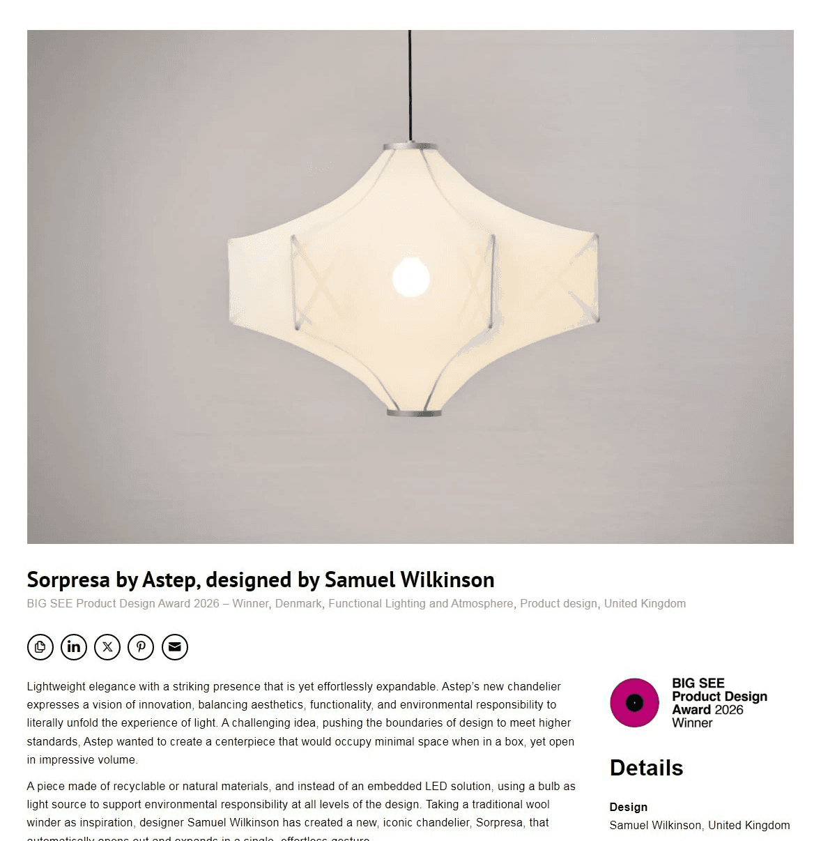 Sorpresa was awarded in the BIG SEE Design Awards 2026 & Fllair was awarded 'Best Outdoor product' by US publication LUXE magazine in their Luxe RED (residential excellence in design) awards.