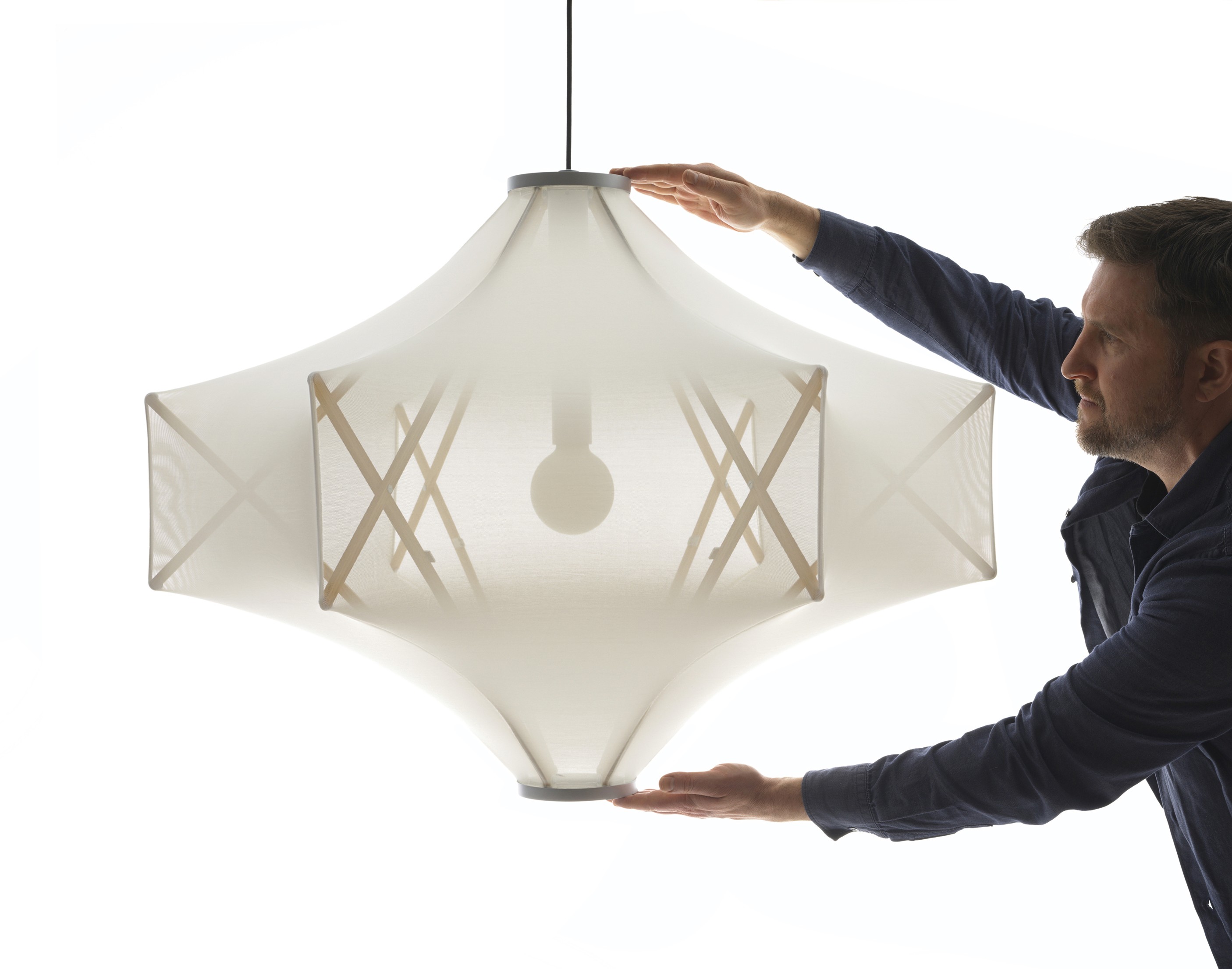 A key challenge of large volume lamps is their packaging size contributing to an increased carbon footprint due to inefficiency in transport space and excess materials. With Sorpresa, rather than opting for a disassembled flat-pack lamp, we've developed a pre-assembled lamp with an innovative timber mechanism that enables it to expand automatically upon release from its packaging.