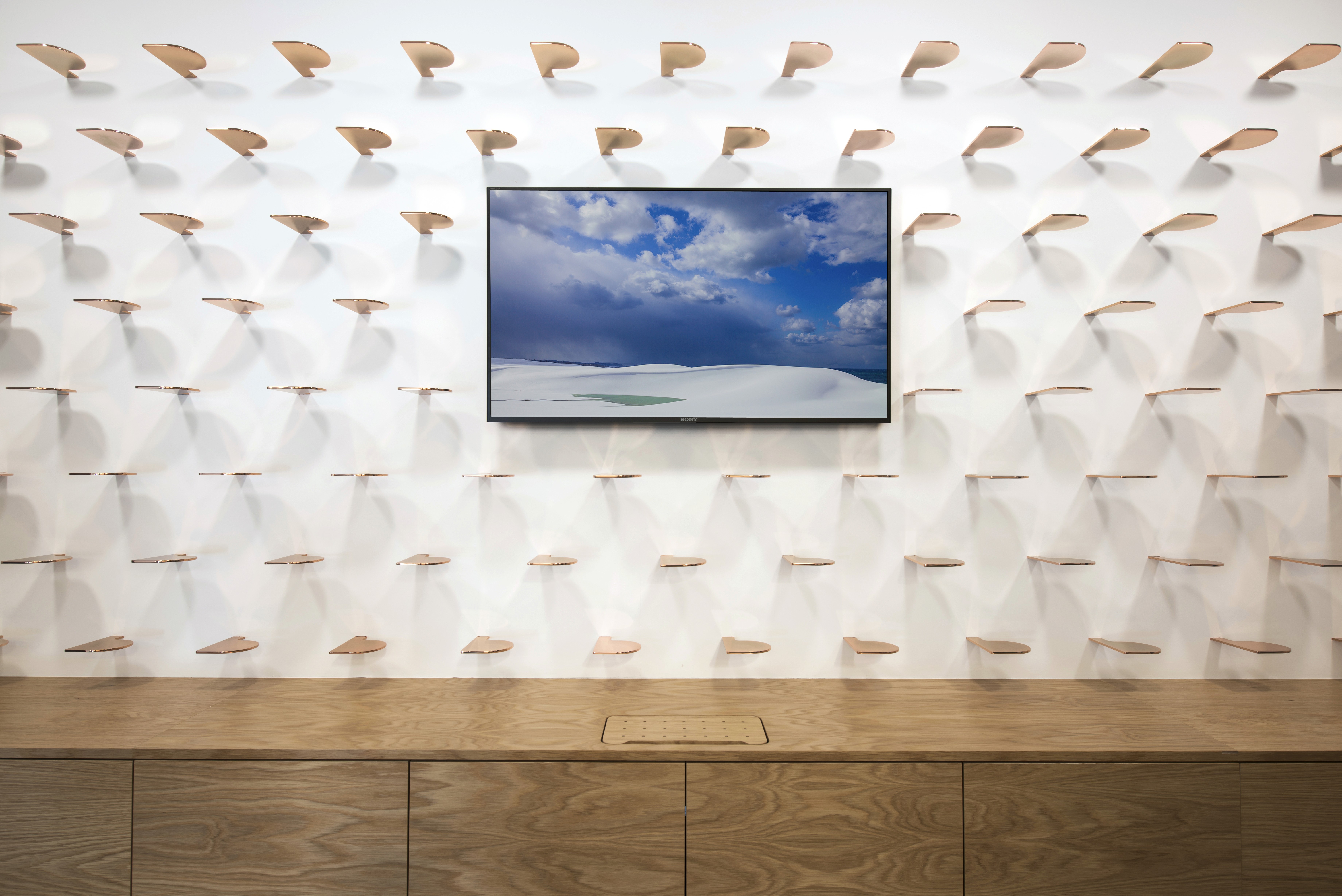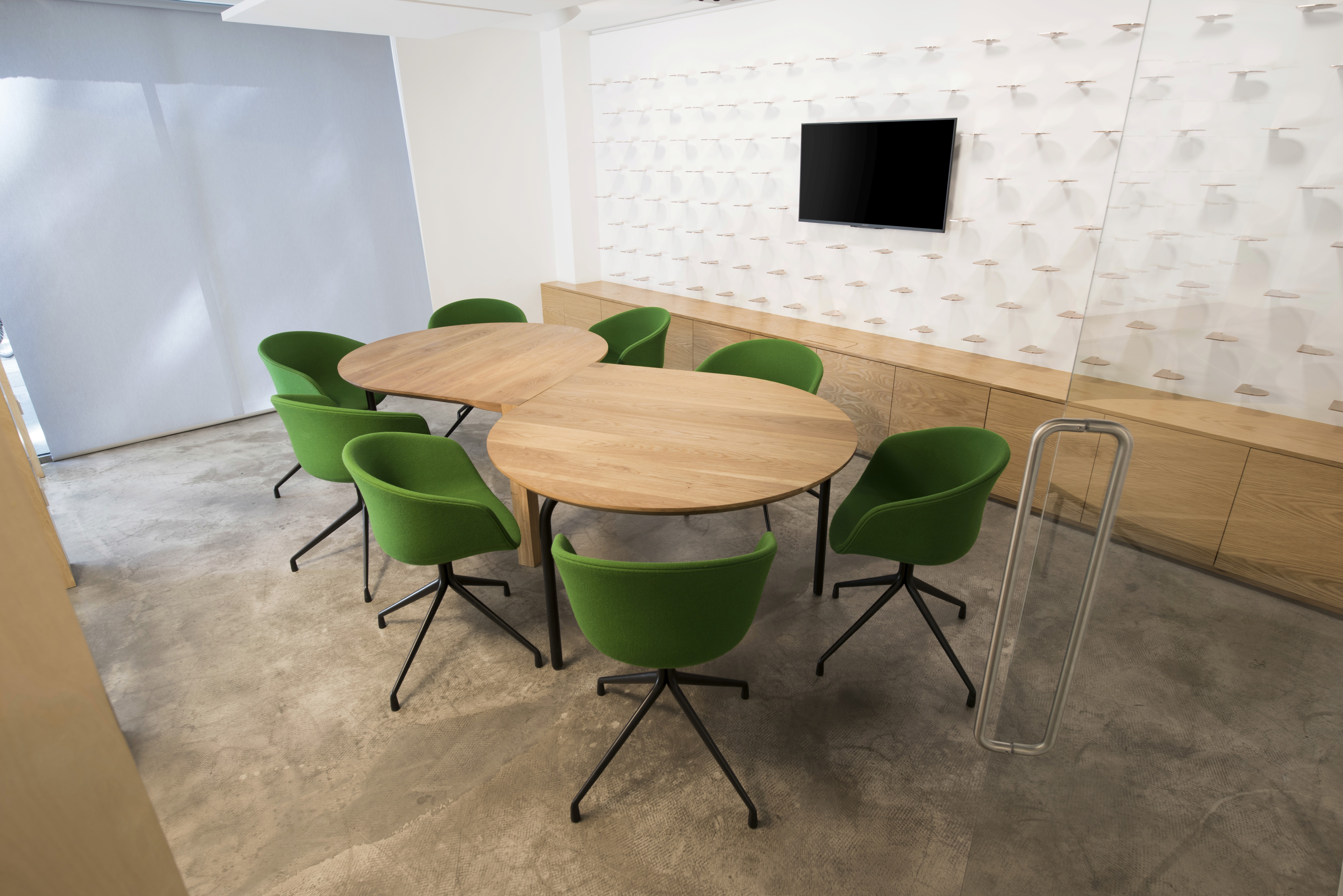 The meeting room is project designed for client who wanted an aesthetic presentation and display space. It features a unique display wall and bespoke tables that could work together or as two distinct separate objects.