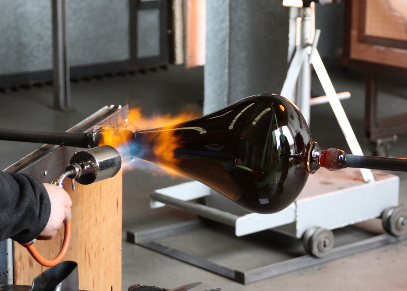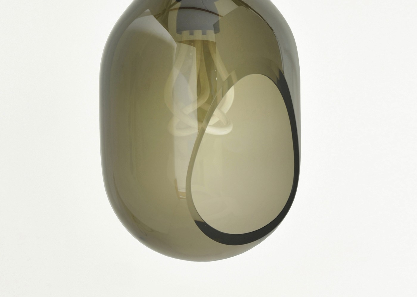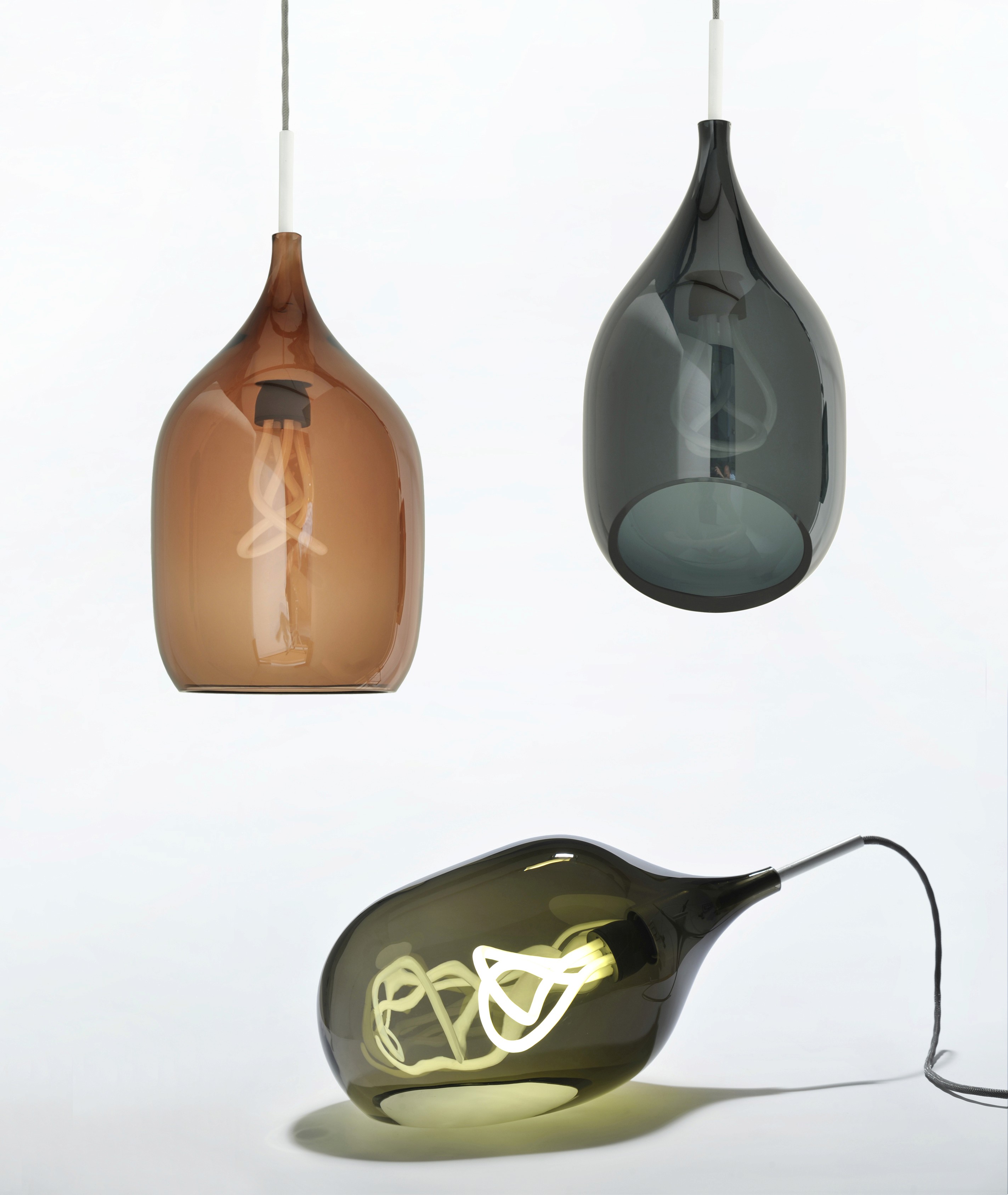Influenced by the original Limited Edition Series, Vessel consists of a blown glass form designed specifically to celebrate the Plumen 001 bulb. When illuminated the glass tint mutes the light without hiding the form and produces an unexpected irregular reflection that appears holographic