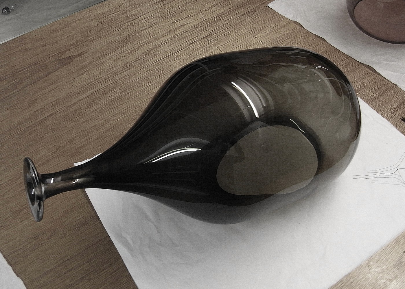 The Vessels look to celebrate the Plumen 001 from every different perspective. The designs we reproduced specifically to complement the flowing forms of the Plumen 001. When illuminated the glass tint mutes the light without hiding the form and produces an unexpected irregular reflection that appears holographic.