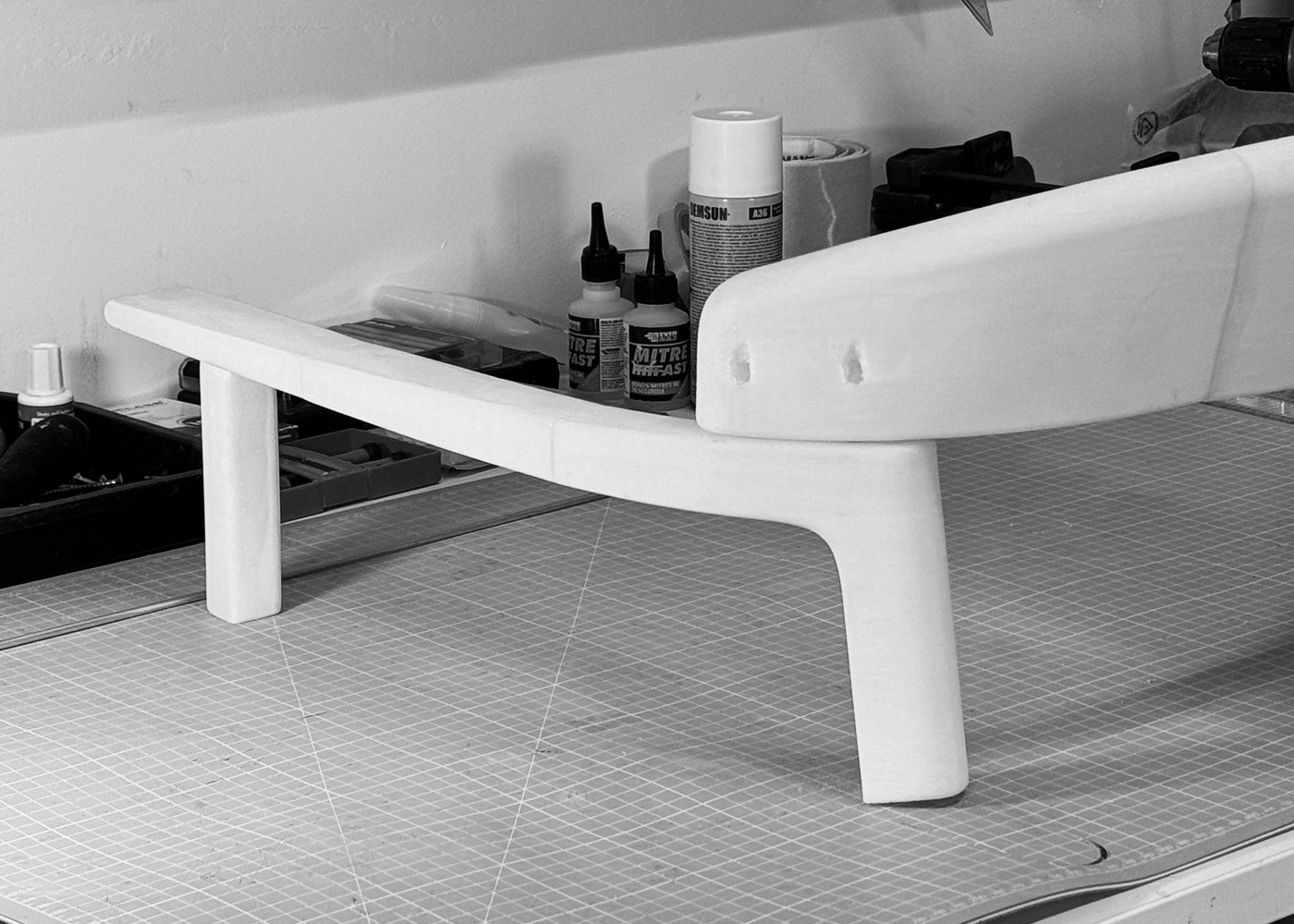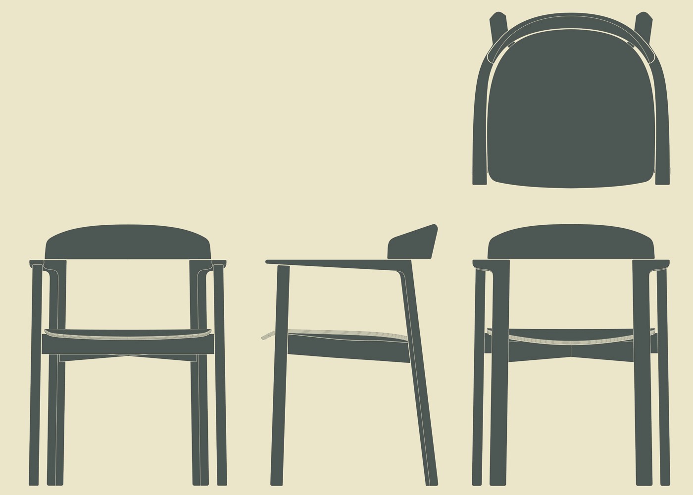 The signature detail is the relationship between the backrest, which is steambent then machined, and the connected leg/arm component.