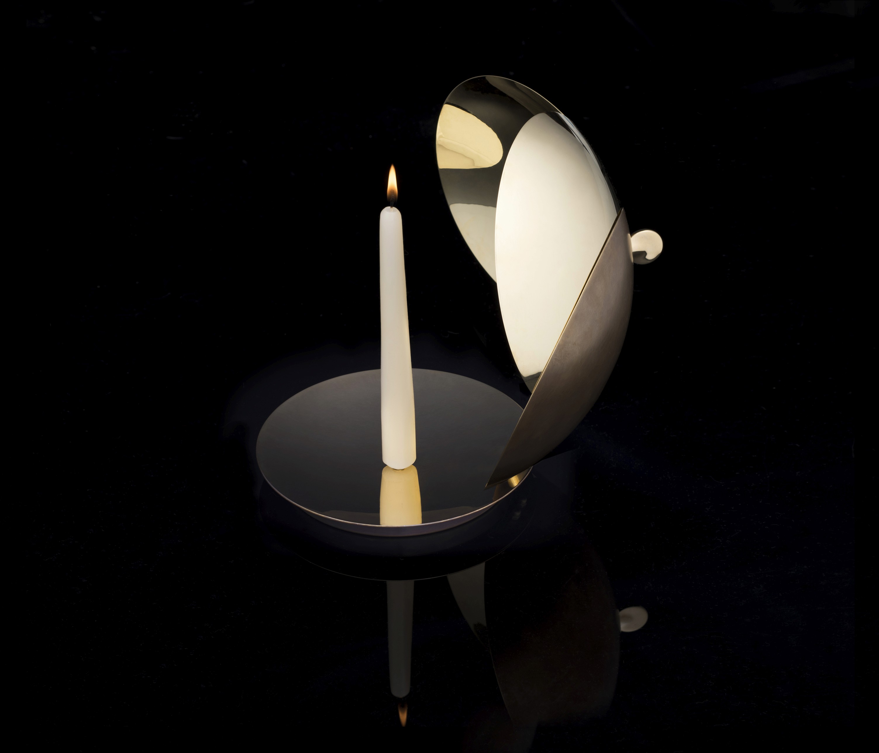 The idea behind the Zymbel was to create a candle holder that would reflect and amplify the glow from a single candle with a bit of ‘theatre’.